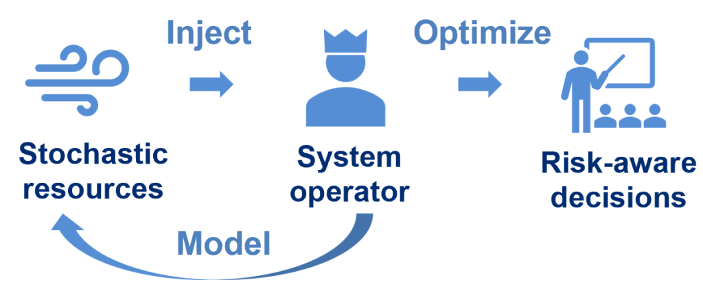 My research integrates advanced stochastic modeling, (inverse) optimization, and machine learning into decision-making processes for system operators. This work enables power systems to efficiently incorporate large amounts of variable renewable energy, facilitating deep decarbonization while enhancing reliability and providing more affordable clean electricity for consumers.