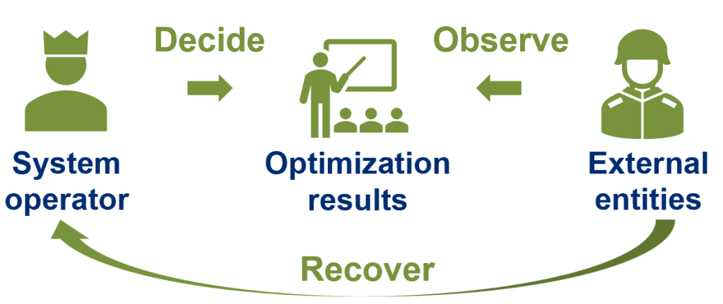 Information asymmetry in power systems and markets hampers operational efficiency. Another focus of my research addresses this challenge through inverse optimization, which reveals hidden information in power system decision models. I developed a data-driven inverse optimization model to recover generators’ marginal offer prices in wholesale energy markets, enhancing the competitive positioning of market participants [paper]. I then extended this approach by integrating stochastic modeling, proposing inverse distributionally robust optimization to infer a decision-maker’s conservativeness based on the size of a Wasserstein metric-based ambiguity set [paper]. This research overcomes the limitations of black-box machine learning and data mining by offering greater explainability and robust theoretical guarantees.